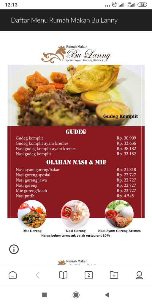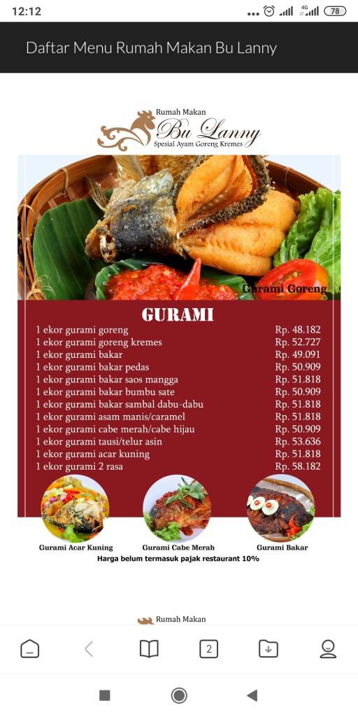 Daftar Menu RM Bu Lanny